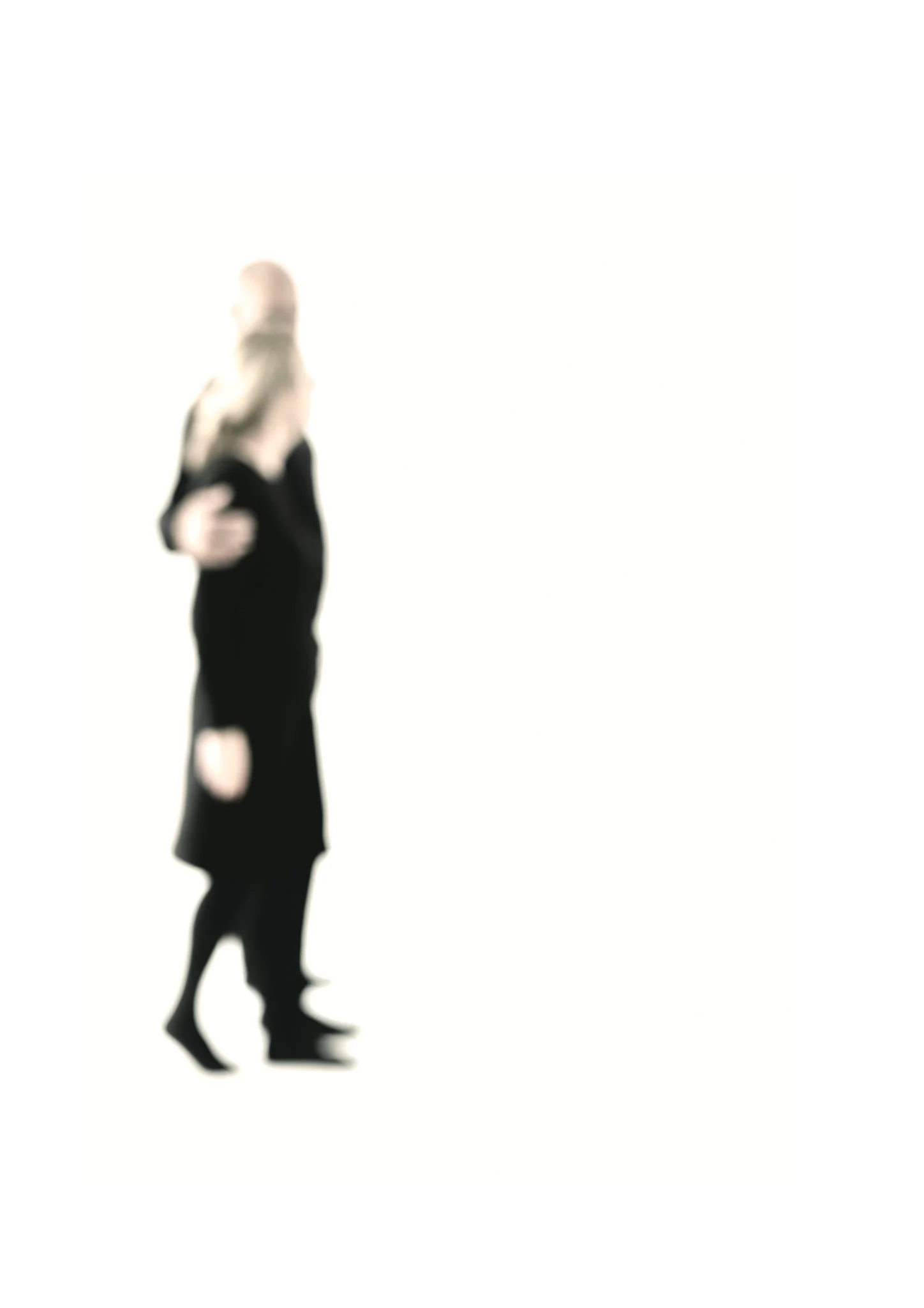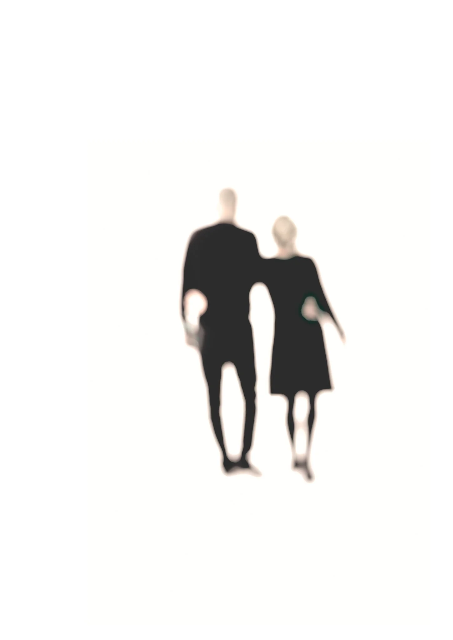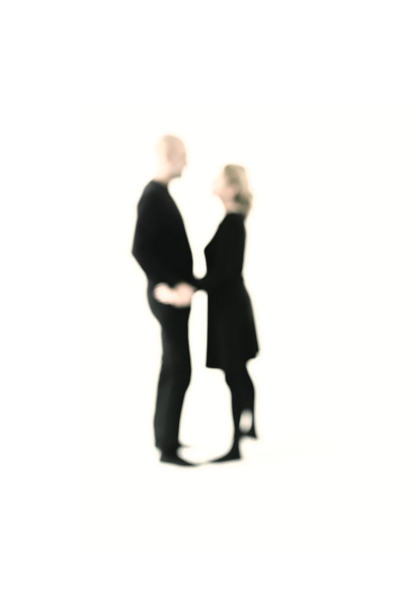 Diese Fotografien reduzieren die Interaktion auf das Wesentliche. Ihre Klarheit und Zurückhaltung erinnert an japanische Zeichnungen, an klassische Schwarz-Weiß-Grafik. Zeit und Ort verlieren ihre Bedeutung, das Paar wird zu einer universellen Begegnung, zu einem leisen Dialog, der über Kultur, Raum und Geschichte hinweg verständlich bleibt. Jede Haltung, jede Linie ihres Zusammenspiels trägt eine Bedeutung, die der Betrachter intuitiv erfasst – und die doch Raum lässt für eigene Assoziationen und Empfindungen.